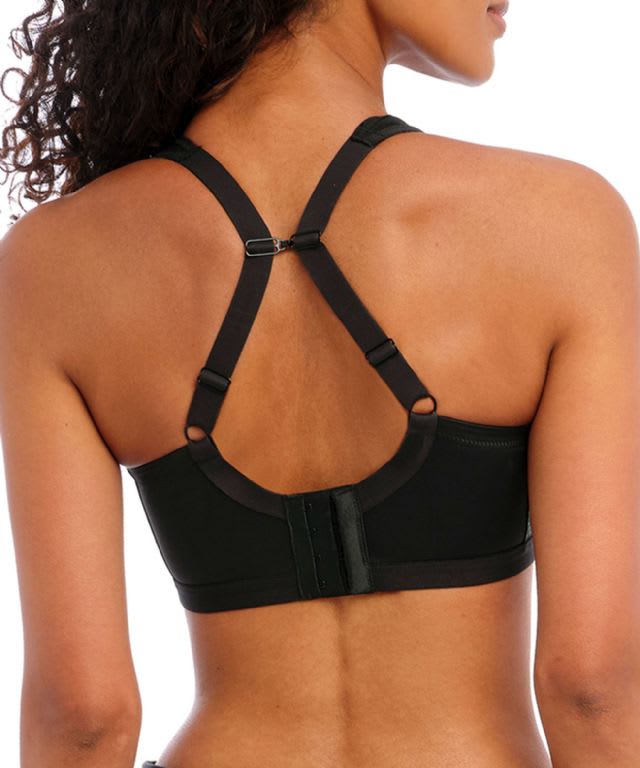 Dynamic is a sports bra designed for high intensity exercise, such as heavy workouts. This non-wired soft cup sports bra features a double layer inner cup for support and shaping. Adjustable padded straps can be fastened with a J-hook to create a racerback style.